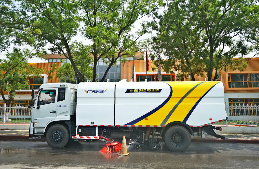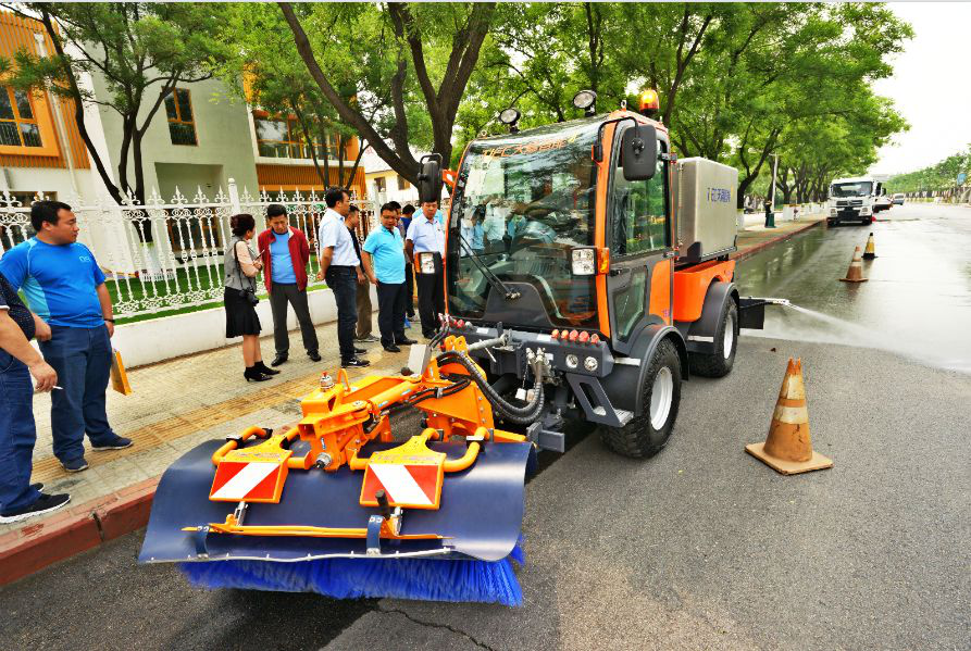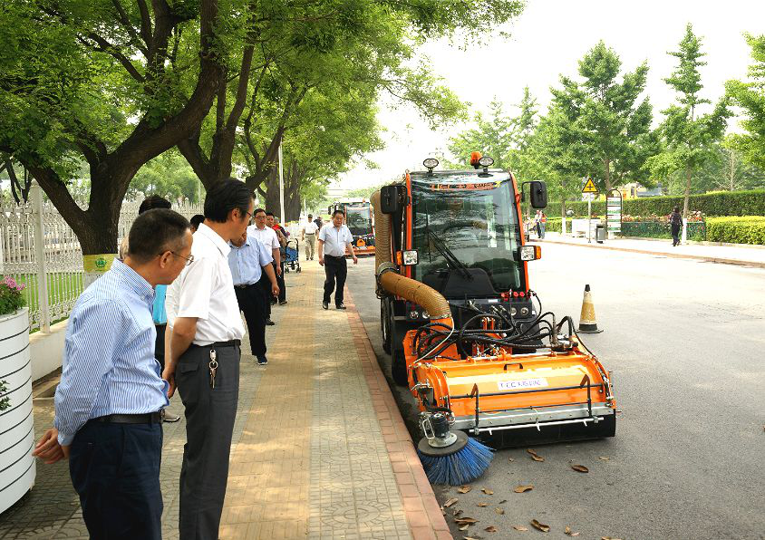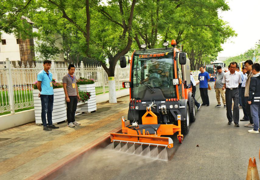 全體與會專家及業(yè)內人士現(xiàn)場觀看天嘉公司自主研發(fā)的多功能作業(yè)平臺及智能環(huán)保節(jié)能車輛和裝備,并給予充分肯定。單發(fā)洗掃、智能噴灑、落葉收集等數(shù)種產品不僅作業(yè)效果好,同時兼具創(chuàng)新性和智能環(huán)保的特點,受到格外的關注與好評。